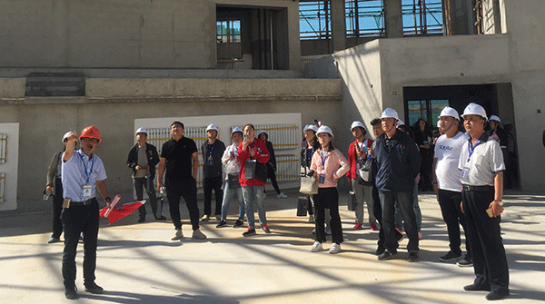 觀摩活動(dòng)開展前,工程公司技術(shù)負(fù)責(zé)人丁園園就項(xiàng)目綠色施工、質(zhì)量安全標(biāo)準(zhǔn)化施工、BIM技術(shù)運(yùn)用等方面作了經(jīng)驗(yàn)介紹。觀摩中,項(xiàng)目技術(shù)負(fù)責(zé)人洪陽就項(xiàng)目BIM技術(shù)在場(chǎng)地布置模擬、樣板策劃、碰撞檢查與優(yōu)化、可視化交底、凈高分析與控制、日常安全質(zhì)量管理等方面做了詳細(xì)講解。