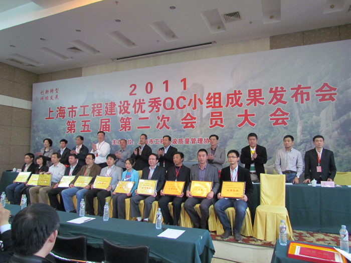 4月17日上海市工程建設(shè)質(zhì)量管理協(xié)會(huì)召開2011年建設(shè)工程優(yōu)秀QC小組活動(dòng)成果發(fā)布會(huì)暨第五屆第二次會(huì)員大會(huì)。第一工程公司選送的 “攻克3m厚大體積砼底板裂縫”、“提高施工現(xiàn)場(chǎng)安全達(dá)標(biāo)優(yōu)良率”、“推行‘四節(jié)一環(huán)保’有效降低工程成本”、“提高建筑幕墻工程的施工質(zhì)量”、“有效控制填充墻內(nèi)混凝土構(gòu)造柱裂縫”、“有效控制斜屋面混凝土施工質(zhì)量”、“提高YTONG砂加氣砼砌塊砌筑合格率”、“有效提高模板工程施工質(zhì)量”、“降低明珠城三期工程鋼筋損耗”等九項(xiàng)QC成果均參加本次活動(dòng)的發(fā)布與交流。這次江蘇省在滬企業(yè)參加QC成果發(fā)布、交流共83篇,我公司就占據(jù)其中的14%,得到了駐滬辦領(lǐng)導(dǎo)的充分肯定。工程公司也被上海市工程建設(shè)質(zhì)量管理協(xié)會(huì)評(píng)為2011年上海市建設(shè)質(zhì)量管理小組活動(dòng)優(yōu)秀企業(yè)。