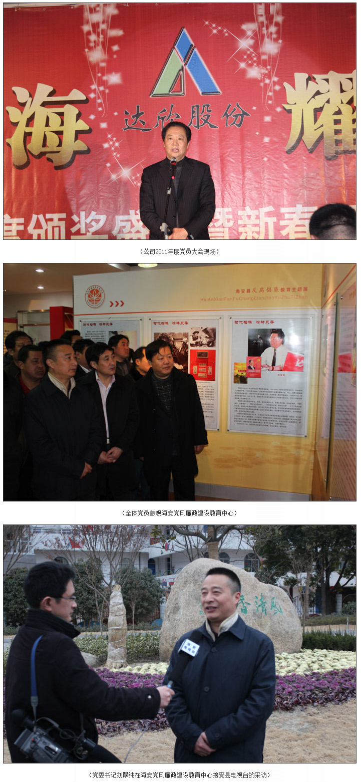 下午,公司全體黨員同志分坐三輛大巴前往海安黨風(fēng)廉政建設(shè)教育中心進(jìn)行學(xué)習(xí),海安縣紀(jì)委副書記、監(jiān)察局局長朱斌同志專程陪同并作輔導(dǎo)教育,同時對公司在過完春節(jié)假期的第一個工作日,組織黨員參加這樣有意義的活動給予了肯定,參觀完后,公司全體黨員還進(jìn)行了黨委委員謝果生同志到齡辭職請求的報告,選舉增補(bǔ)了杭小建同志為黨委成員的議程。